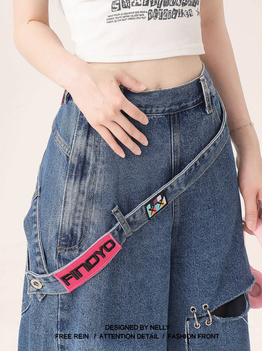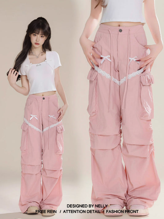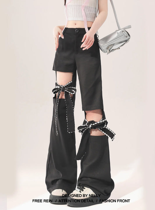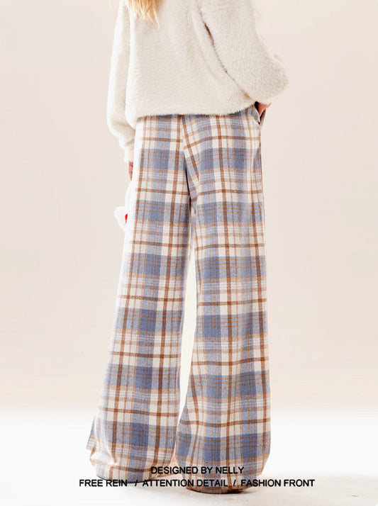 ワンポイント刺繍付きチェック柄カジュアルパンツ