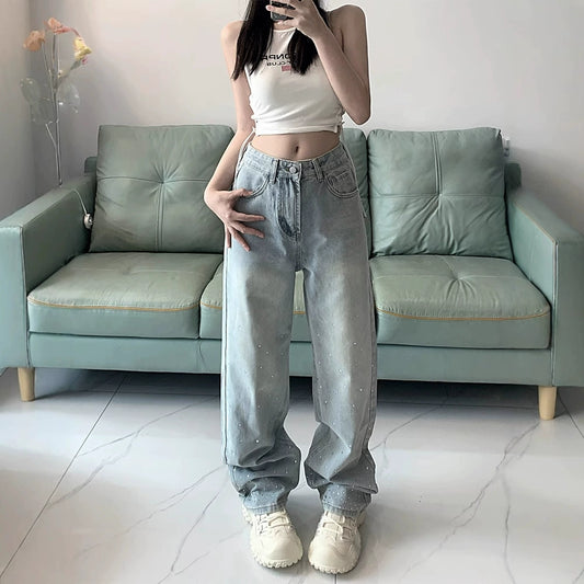 ラインストーンワイドデニムパンツ