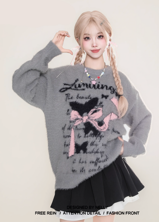 もこもこ蝶結び柄ニット セーター