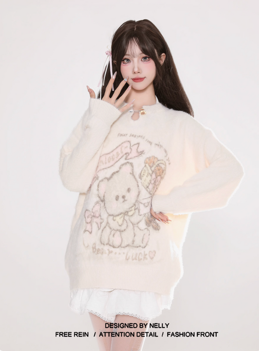 もこもこクマモチーフニットセーター
